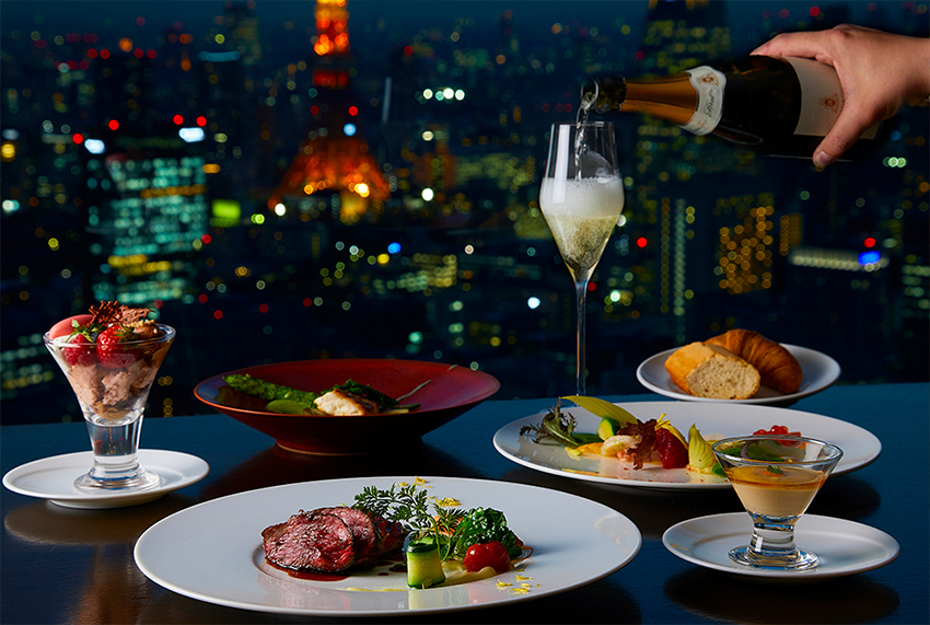 隣接のレストランFishBankTOKYOから新鮮な魚介類をお楽しみ頂けます。名物「ウニのフラン」や産直のオイスター、タラバ蟹、モチロンブランド牛のステーキ等も東京タワーから拡がる夜景と共にご堪能下さいませ!